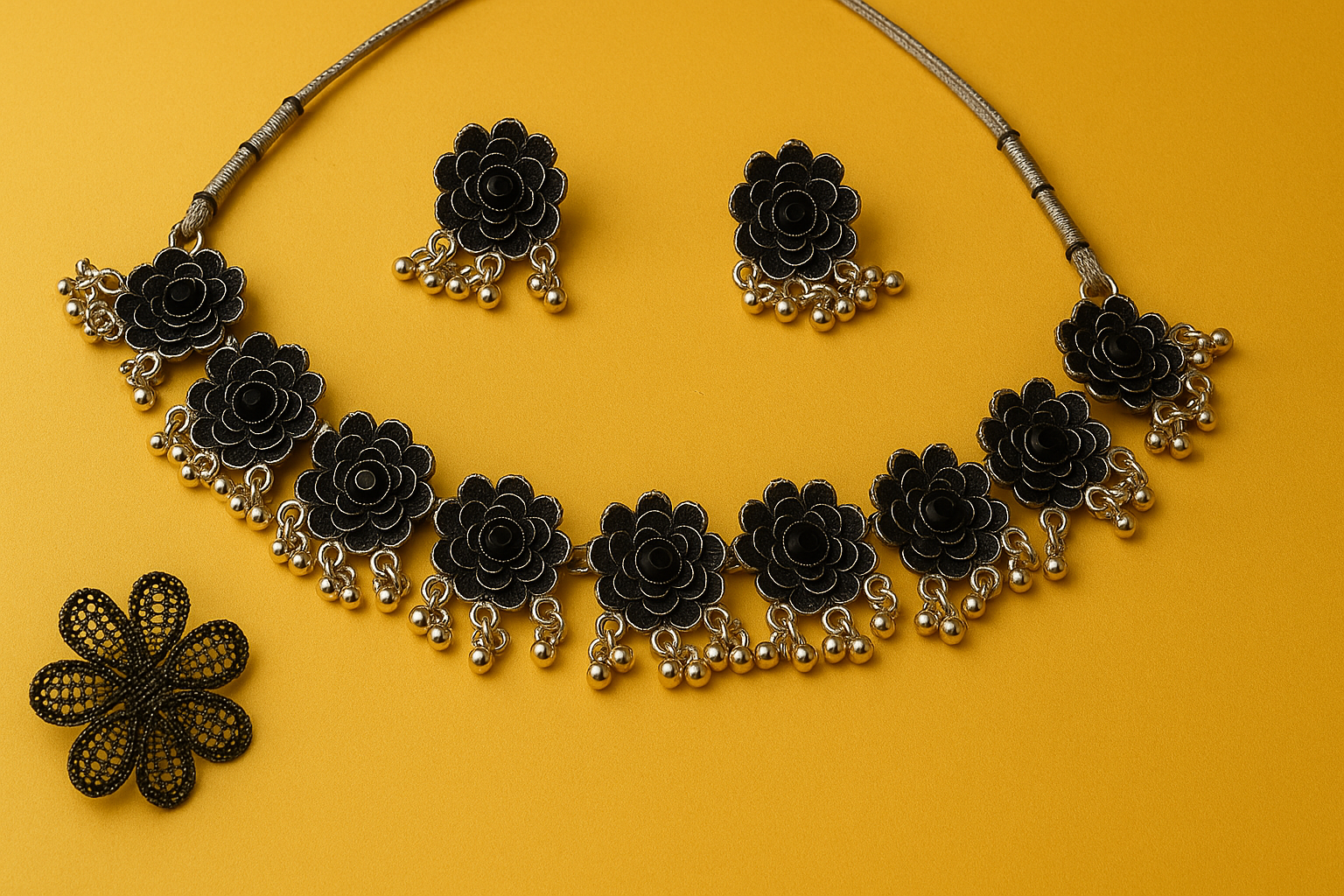 1️⃣ Black Floral Necklace Set 🌸